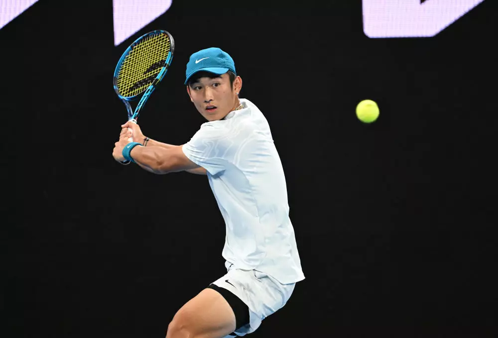 1月18日,商竣程在澳網男單第二輪比賽中回球。新華網圖片