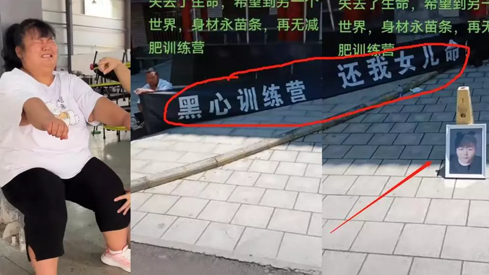 面對訓練營的敷衍了事,翠花的父母徹底崩潰,直接在訓練營門口拉橫幅。純黑色的橫幅,上面寫著「黑心訓練營,還我女兒命」,還放上了翠花的遺照。據附近的便利店老闆表示,翠花就是因為減肥才去世的,目前訓練營還在商量,該如何給翠花的父母一個交代。