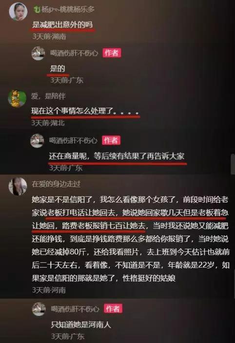 對於「翠花」的突然離世,該知情人士表示很意外,「一般在訓練營訓練時,教練都會時刻監測減肥者的心率,一旦發現有不適,都會送醫檢查。」該知情人士稱,26日晚,他曾看到「翠花」在微信朋友圈稱有些不舒服,5月27日一早就得知「翠花」離世了。