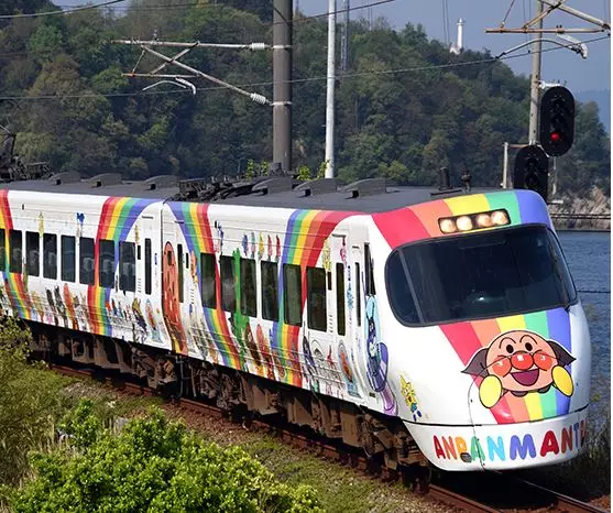 「麵包超人列車」於2000年首次亮相,目前在日本四國的香川、德島、高知、愛媛4縣,與日本本州南部岡山縣之間運行。