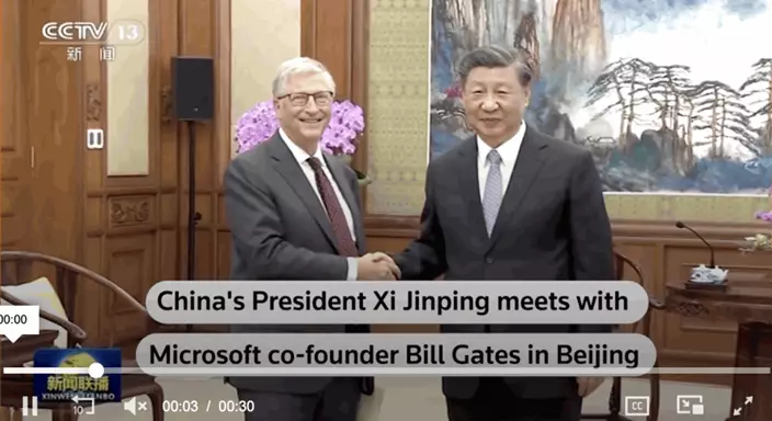外媒引述消息報道,習近平與蓋茲會面期間,稱歡迎包括微軟在內的美國公司,將人工智能技術帶到中國。央視新聞截圖