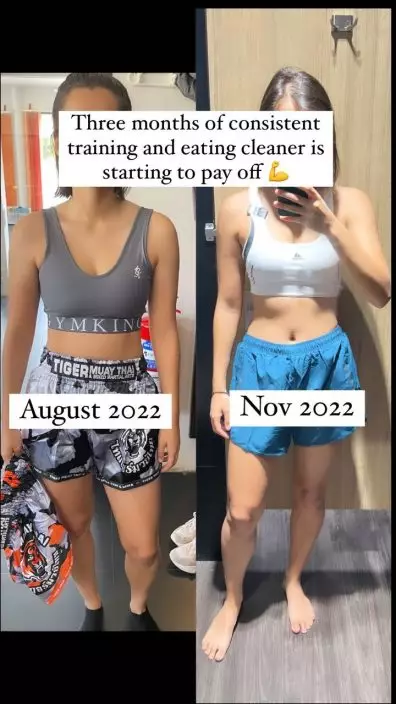 練習泰拳後的謝嘉怡,身材明顯比昔日結實。
