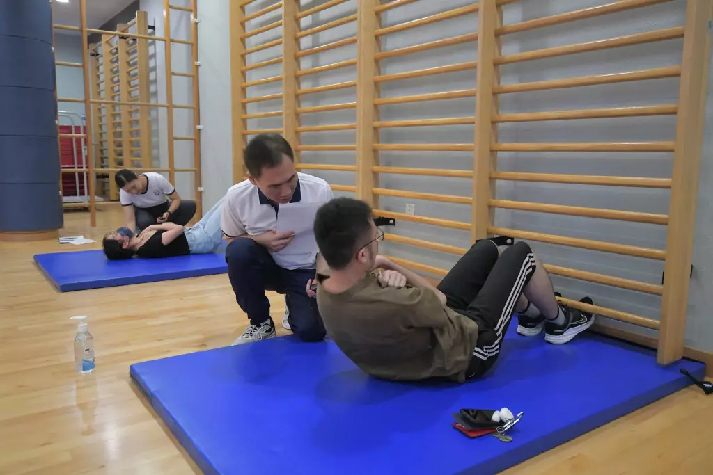 市民即場做體能測試,有入境處人員從旁指導是否標準。