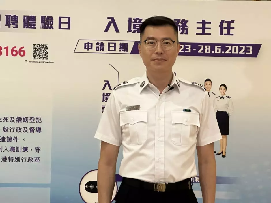 入境事務學院院長康凱表示,今個財政年度會招聘340人,包括80位事務主任及260名入境事務助理員,而響應公務員事務局的新安排,歡迎將於2024/25年畢業的大學本科生申請。他說入境處暫時未有計劃調整入職資格,又指入境處的退休潮已過,流失亦穩定下來。