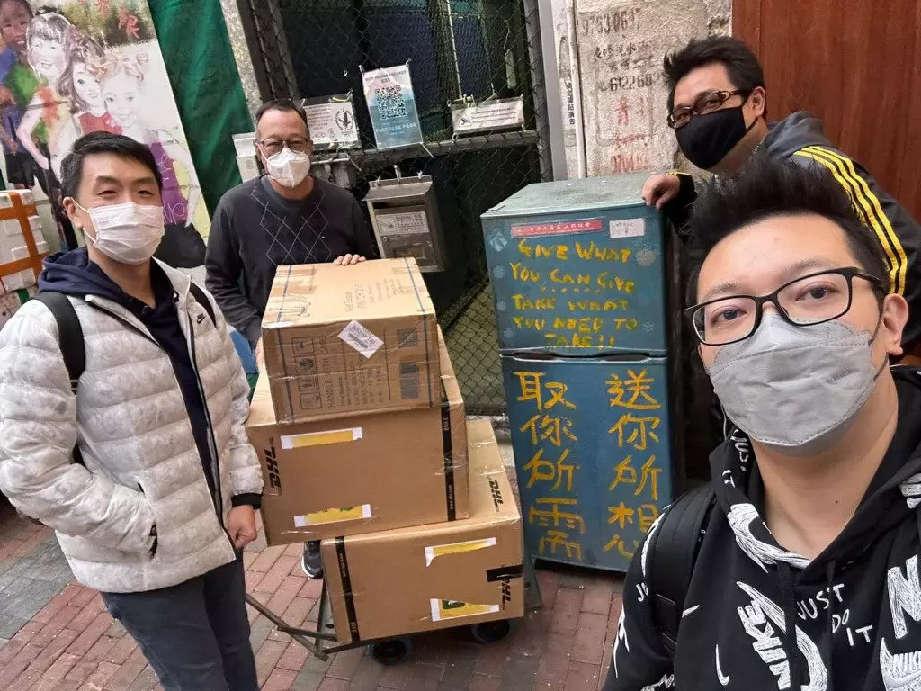 每次有善心巿民受感染主動捐出物資,簡仲文會親自到場答謝。(Blue Fridge Project 藍雪櫃FB)