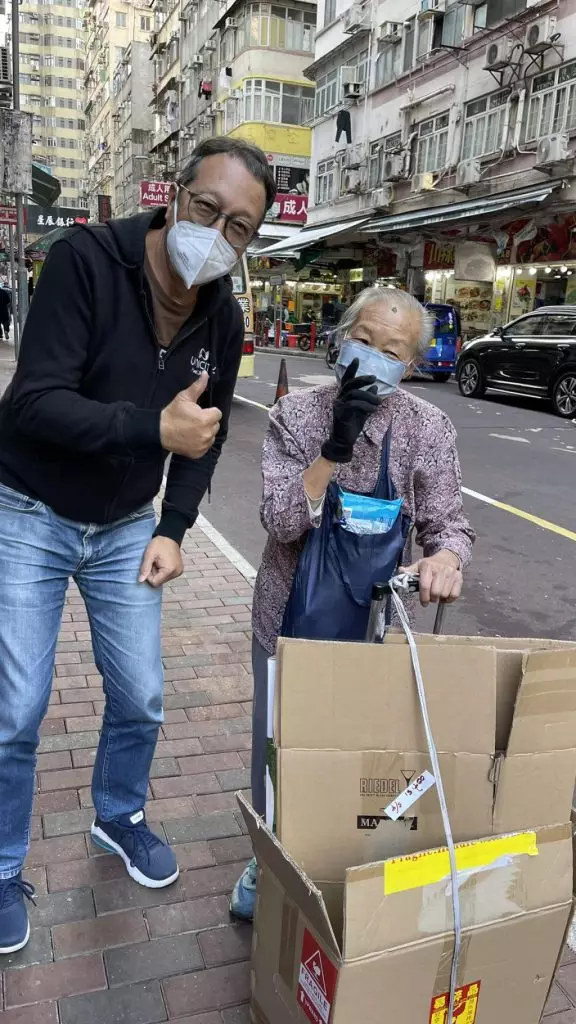 執拾紙皮的長者亦有受惠藍雪櫃服務。(Blue Fridge Project 藍雪櫃FB)