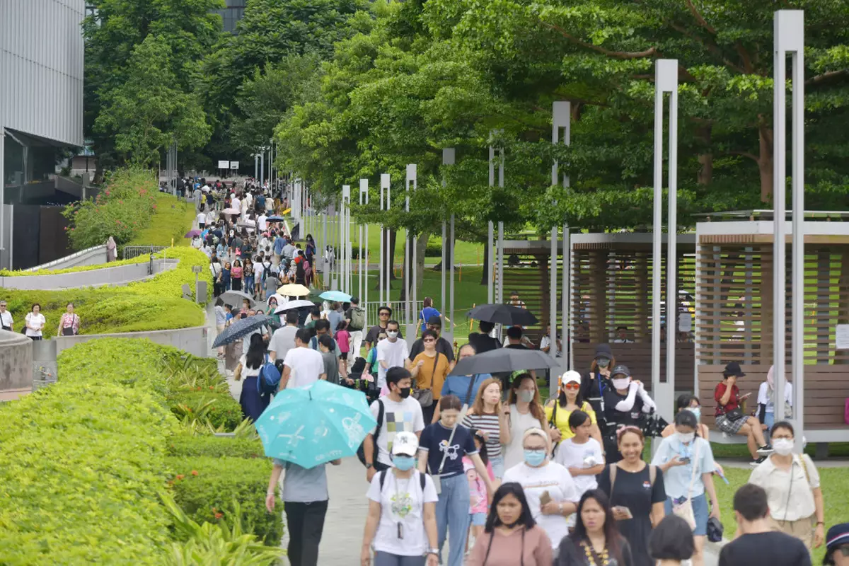 黃色橡皮鴨在維港展出的首個周日,觀鴨市民人山人海。
