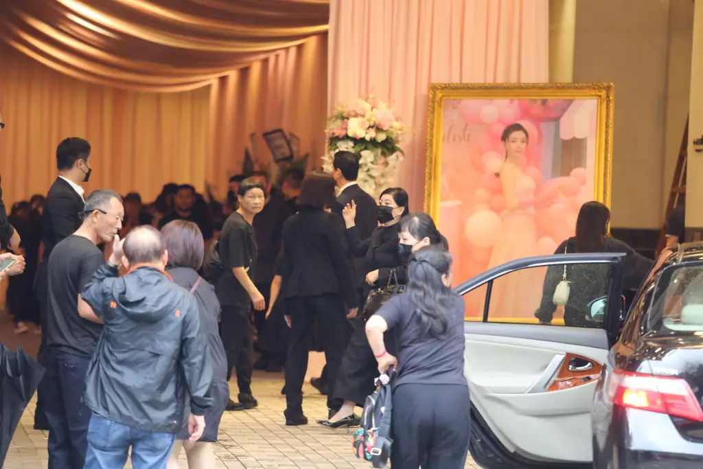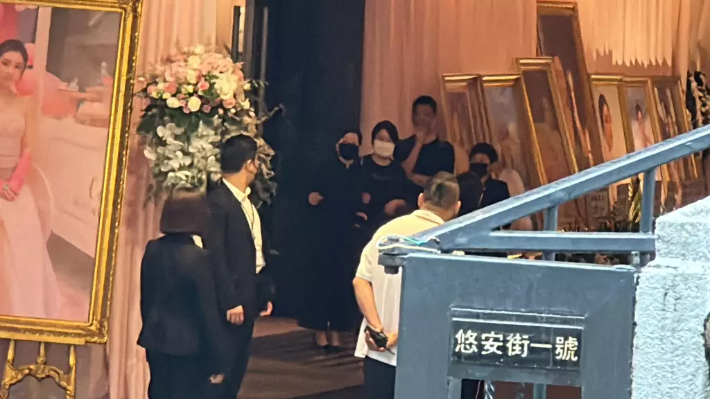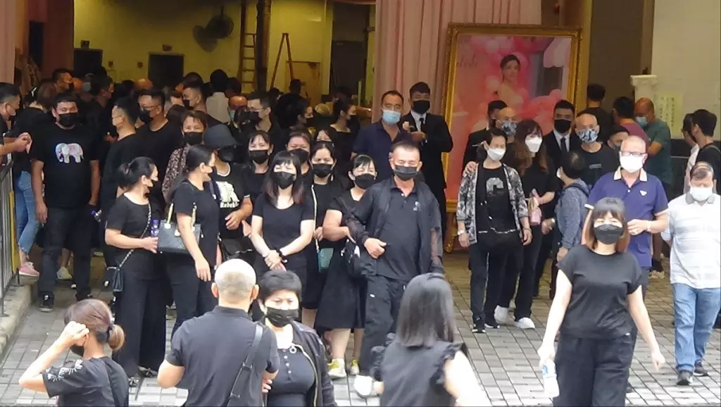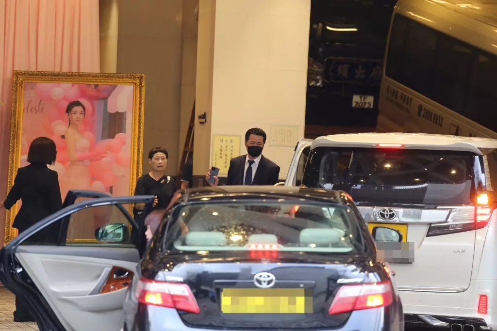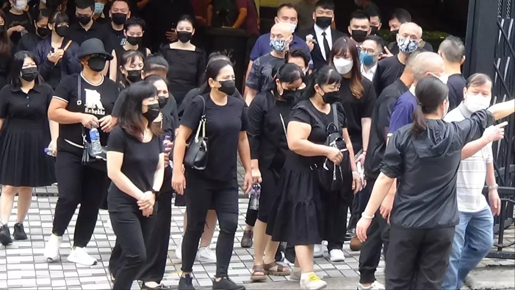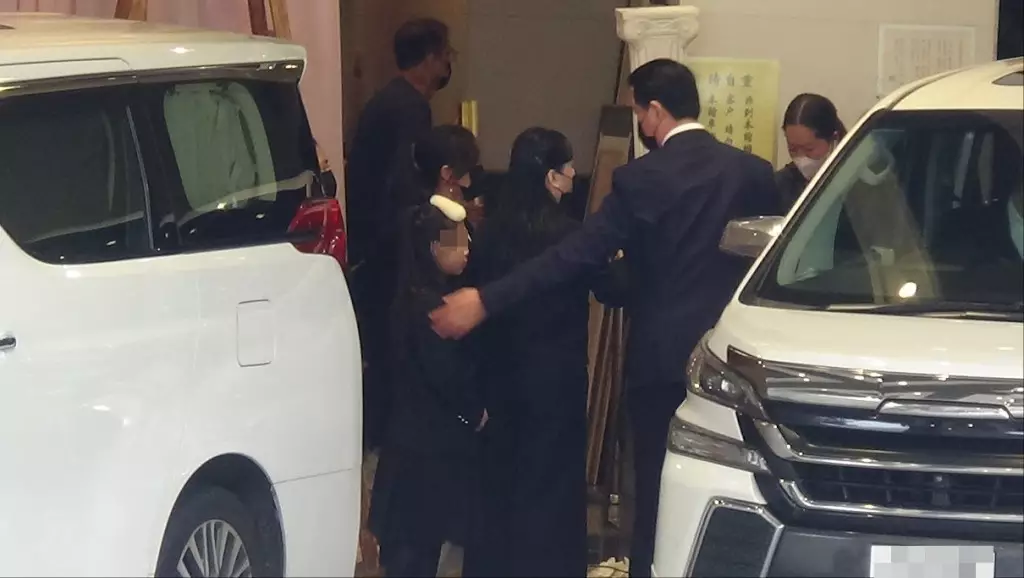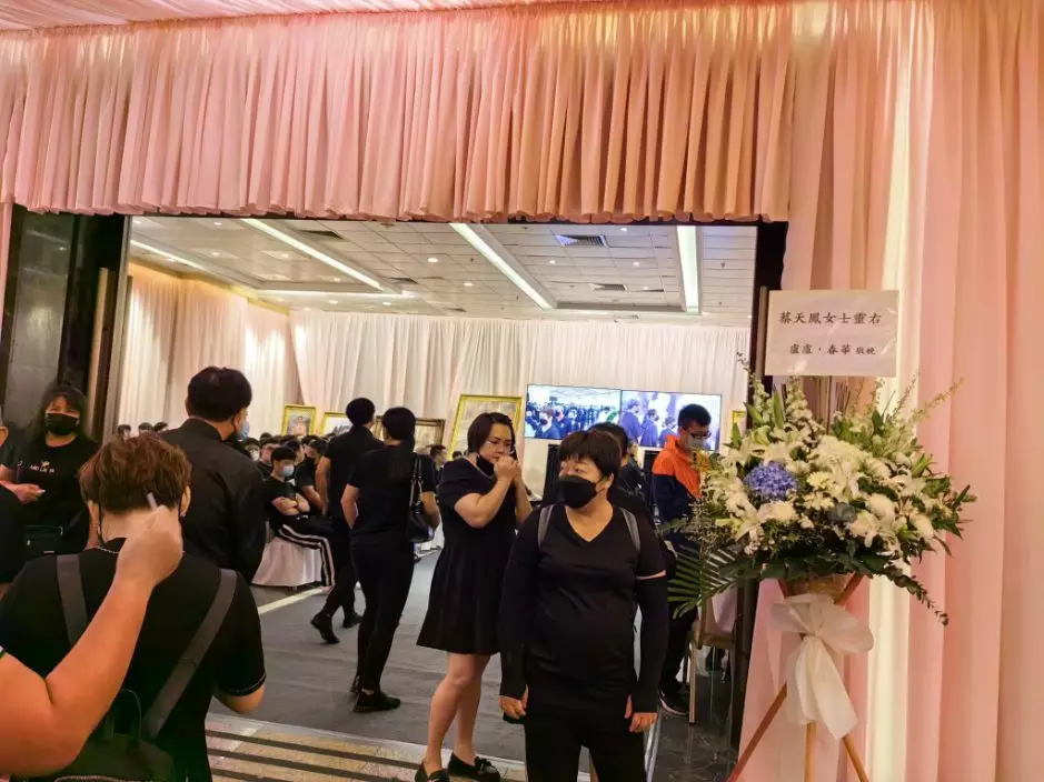 蔡天鳳今早舉殯,其母「五姐」(黑口罩、高跟鞋)一早到達靈堂。