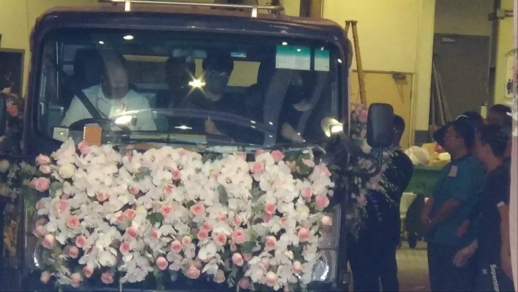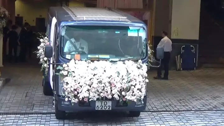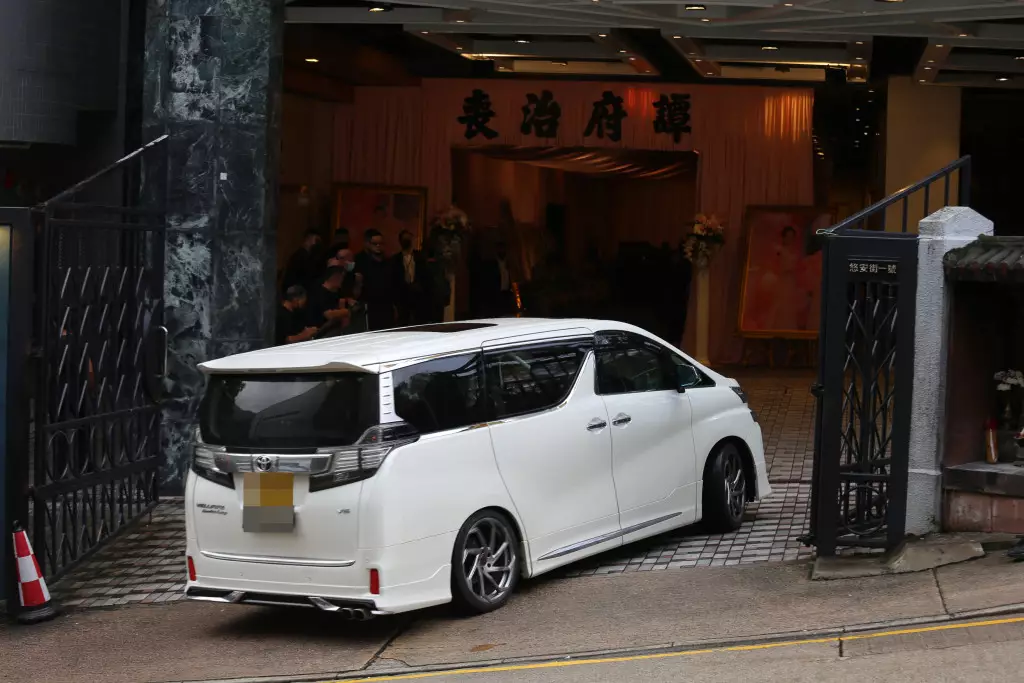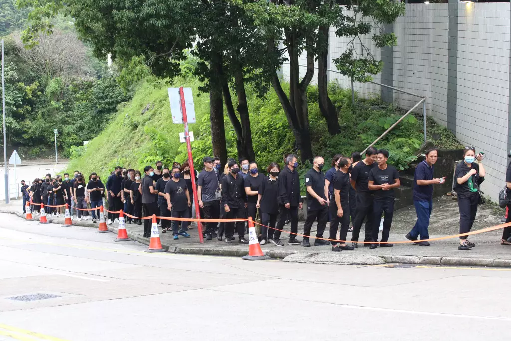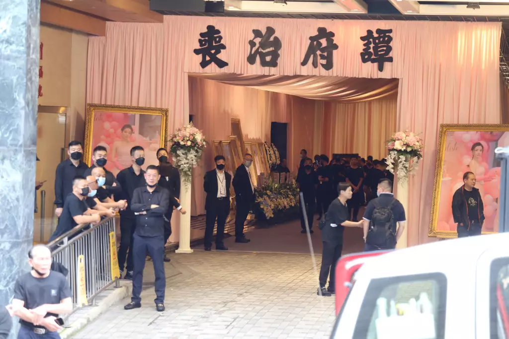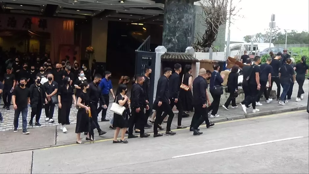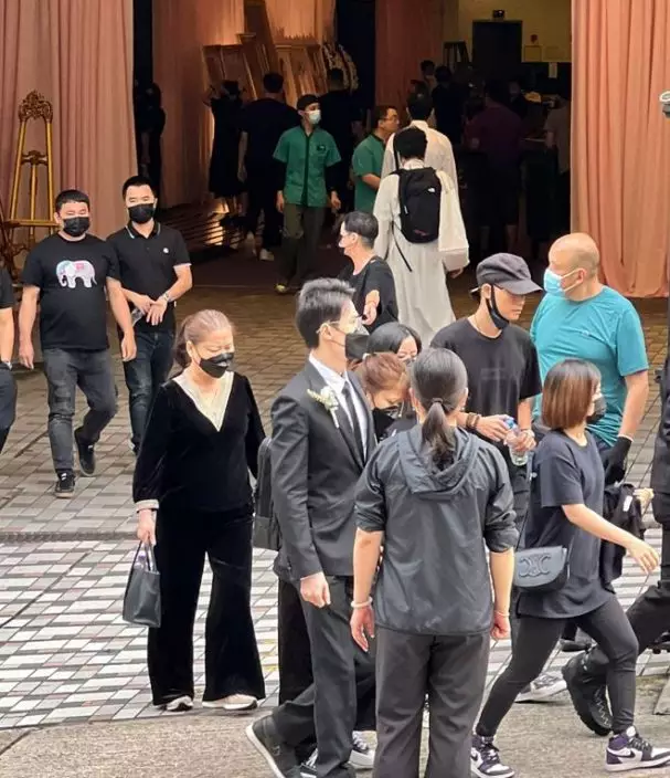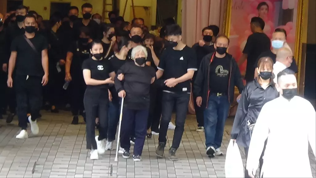 蔡天鳳今早舉殯,其母「五姐」(黑口罩、高跟鞋)一早到達靈堂。