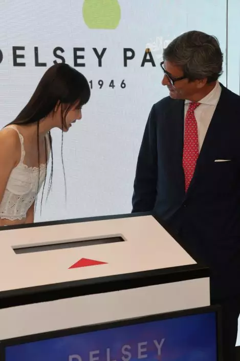 袁澧林到尖沙咀偕DELSEY PARIS全球行政總裁Davide Traxler和亞洲區行政總裁及全球營運總監Jorge Gonzalez一起主持,全新海港城專門店開幕典禮。