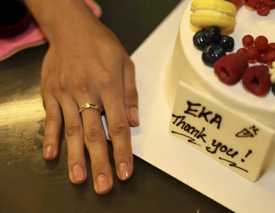 楊卓娜一家人日前送別工作六年的工人姐姐。