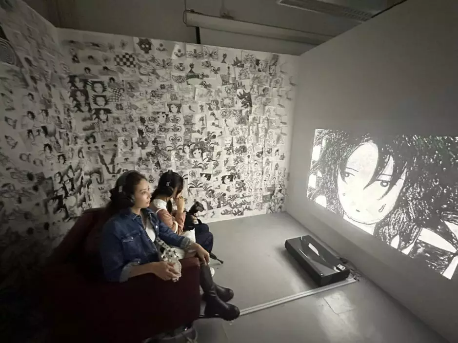 Emma展品除了油畫外,還搭配了錄像裝置。