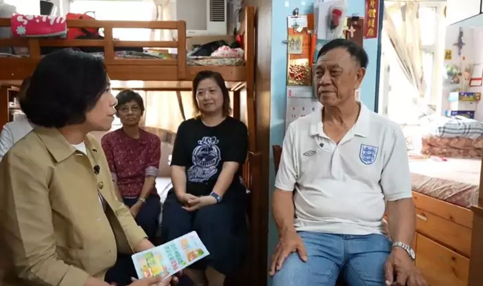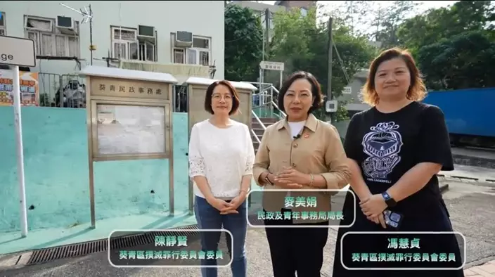 民青局今天(19日)在社交媒體發布影片,麥美娟繼東區家訪後,今次來到青衣聖保祿村,同2位葵青區撲滅罪行委員會委員一齊探望長者街坊,她們3人逐戶向街坊派發宣傳單張,並耐心向長者向講解《完善地區治理》建議方案點樣「幫到你」,以及聆聽他們在民生、地區環境方面嘅意見。