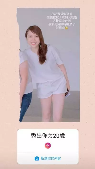 唐海汶早前晒出20歲時去台灣交流的照片,樣子很青澀。