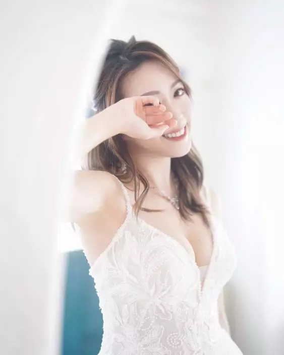 唐海汶經常在IG派福利,之前已分享在沙灘拍攝三點式的美照,非常性感,她亦明白拍攝角度的差異,經常晒出側面圖,令本已驕人的身形更誇張。她早前到韓國旅行,又穿上貼身連身裙,卻沒有拉上胸前的拉鏈,極度誘人。她近日又再次發功,一連發出六張美照,不過竟然是她穿上一襲低胸婚紗、手執花球的照片,網民都十分疑惑,難道又一女神要封盤嫁人。