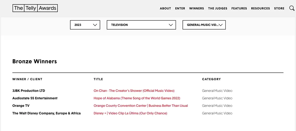 TELEVISION- General Music Video銅獎