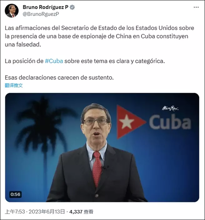 古巴外長此前發影片駁斥美方說法。twitter截圖