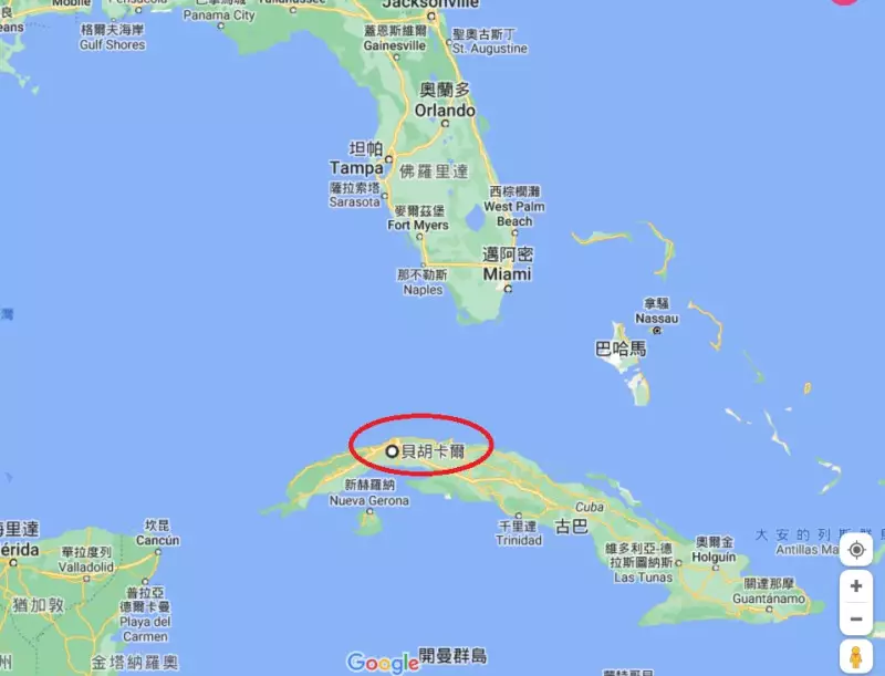 華爾街日報:中國擬古巴建軍事訓練設施 或於距離佛州只有160公里駐軍。 Google Map