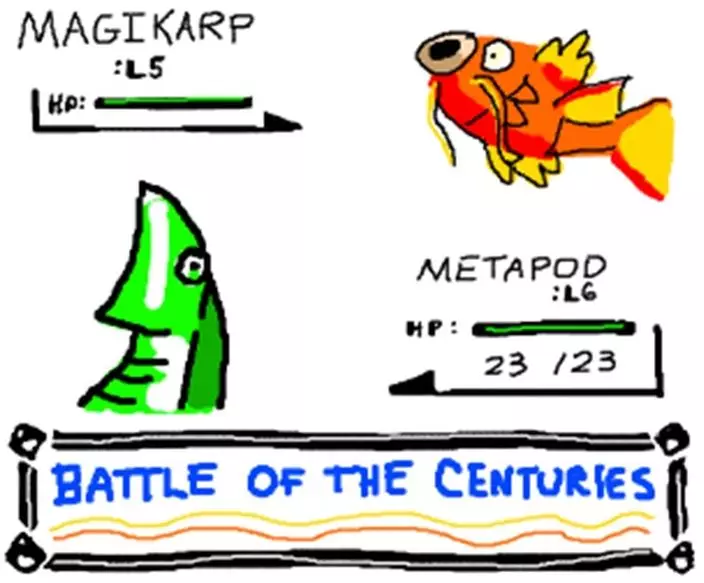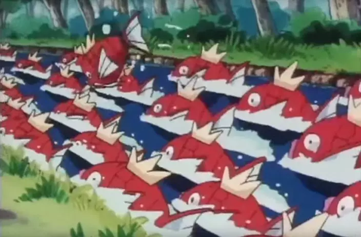 玩過《寵物小精靈》系列遊戲的人都會對「鯉魚王」有深刻印像,這隻鯉魚王相當弱雞,因為牠只有一個技能,而且是一個幾乎無用的技能----跳躍。