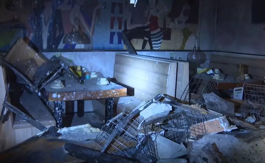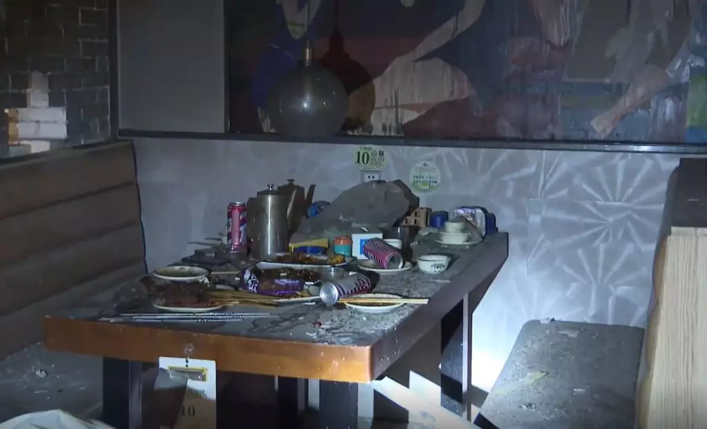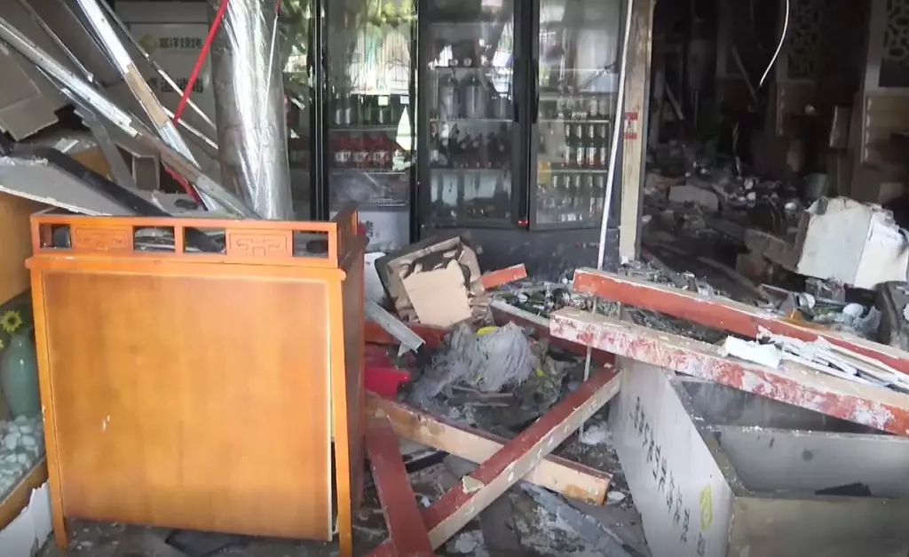 爆炸後,店內一片狼藉破壞嚴重。央視