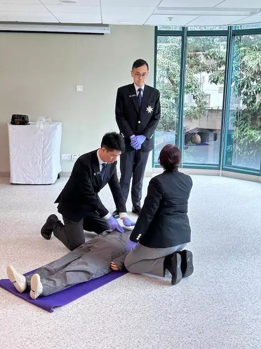 立法會議員(會計界)黃俊碩原來中二時已是聖約翰救傷隊見習隊(現稱少青團)成員,現為急救學講師,今天也在記者會上作示範。