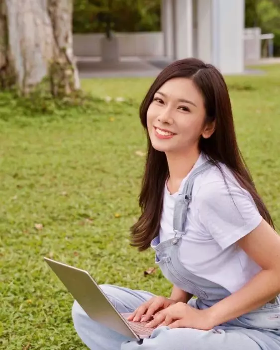 梁凱寧早前晒出20歲於草地上晒長腿的照片。