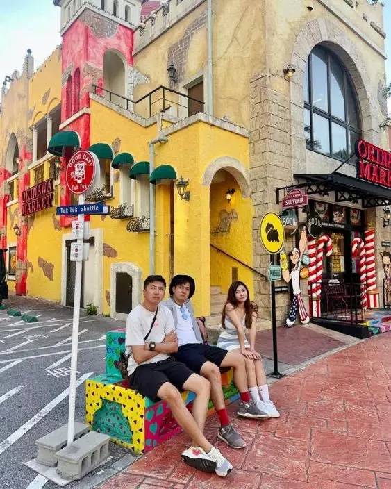 梁凱寧與兩名高大猛男一同遊沖繩。