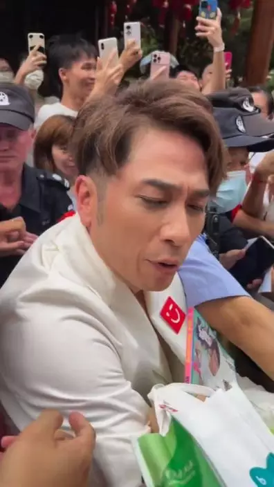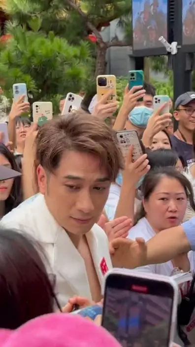 現年43歲的吳卓羲(Ron)自去年參加內地綜藝節目《披荊斬棘2》後圈粉無數,今年初再憑真人騷《大灣仔的夜2》盡展反差萌及爽直真性情推高人氣,甚至被內地網民封為「港圈顏值天花板」。他近日就獲邀出席位於廣州,為某品牌擔任開幕活動嘉賓,從現場粉絲數量所見非常誇張,絕對稱得上是香港頂流偶像,而他走一小段路已被重重包圍,不斷被拉扯的他最後還能保住身上衣服,已算萬幸。