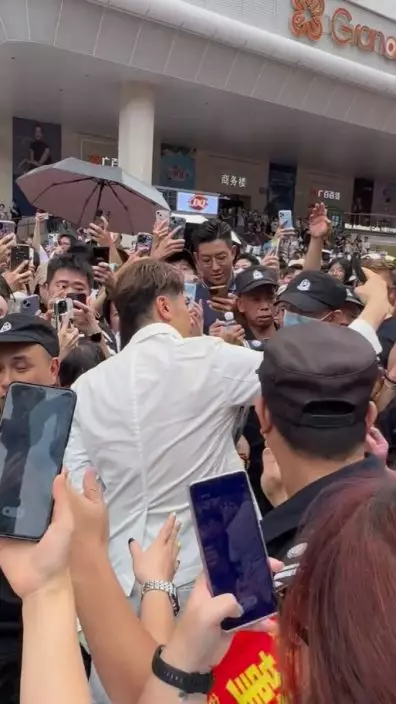 吳卓羲廣州出巡遭女粉絲瘋狂拉扯 面容扭曲衣衫不整露出心口