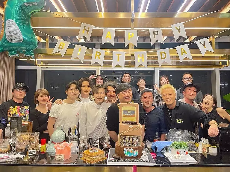 吳卓羲(左)日前終現身電影監製黃永峰(左五)的生日派對。