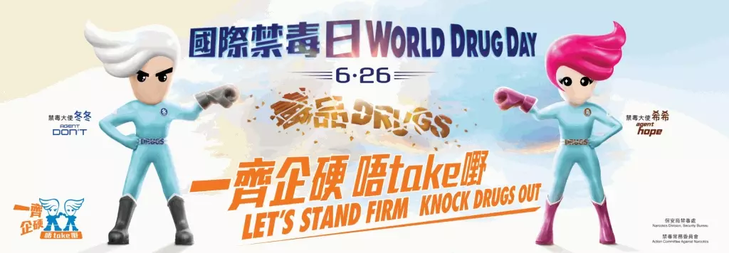 禁毒處表示,26日晚7時30分至8時,以及8時至8時30分期間,在一個免費電視台播映的兩個節目中將加入禁毒內容,鼓勵市民「一齊企硬 唔take嘢」。執法團隊亦會不遺餘力打擊毒品,致力於源頭阻截毒品供應。