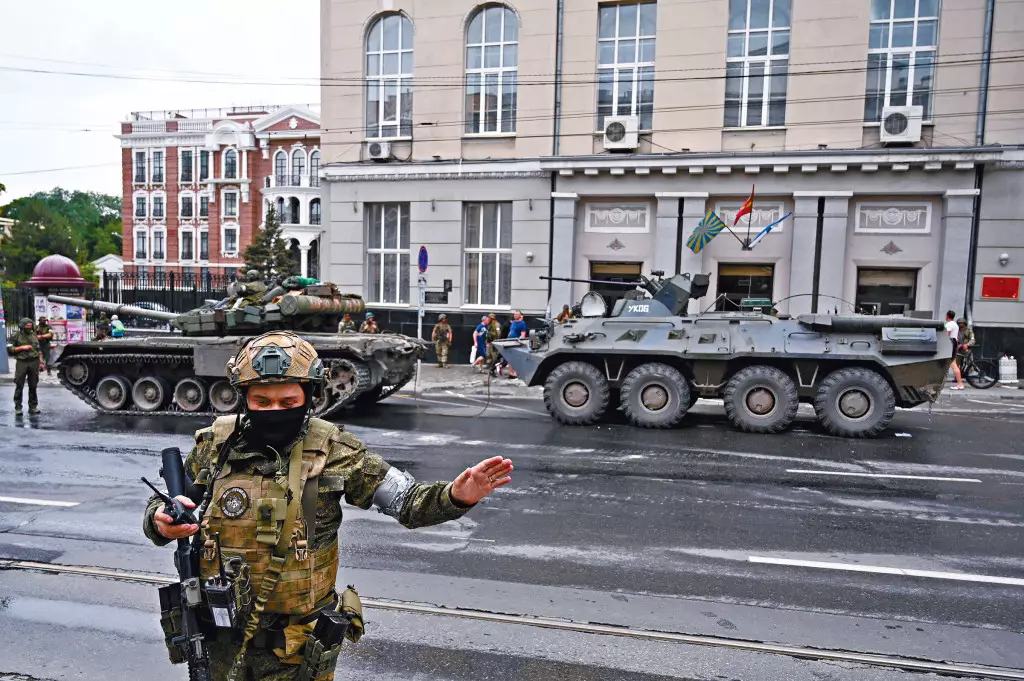 6月24日星期六,瓦格納集團僱傭兵坐車離開羅斯托夫。美聯社