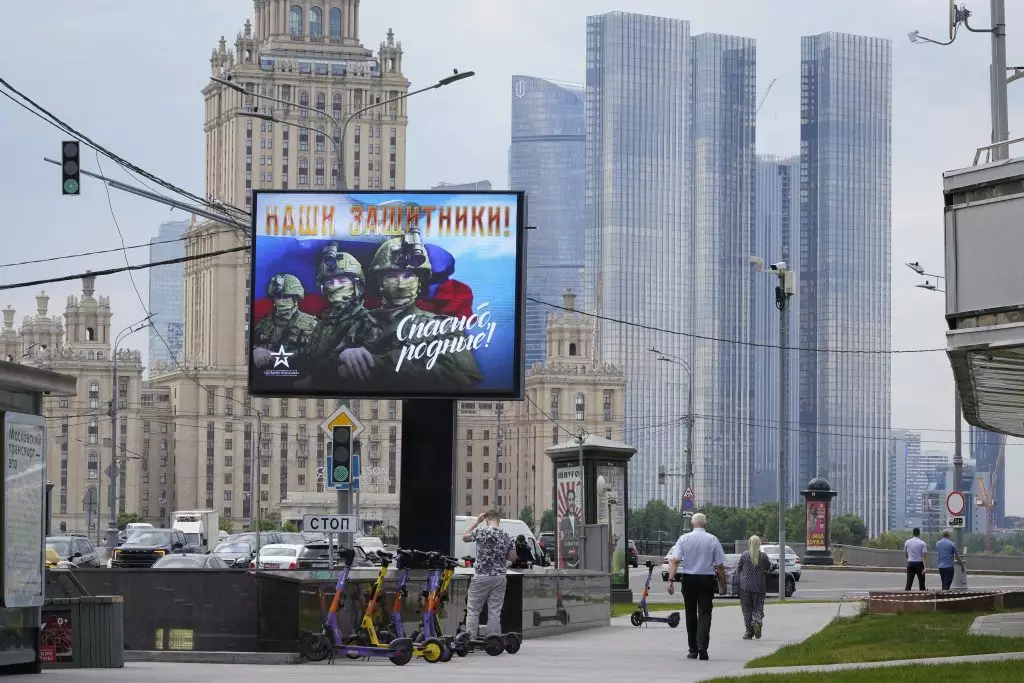 在莫斯科,隨處可見瓦格納集團的海報。AP圖片