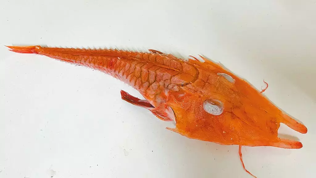 浩瀚的海洋無奇不有!近日台灣台東有漁民捕獲一條橙紅色怪魚,長得有點像龍,但魚身又似蝦,詭異的外觀曝光後,旋即惹起網民熱烈討論,專家判斷為深海罕見魚類。