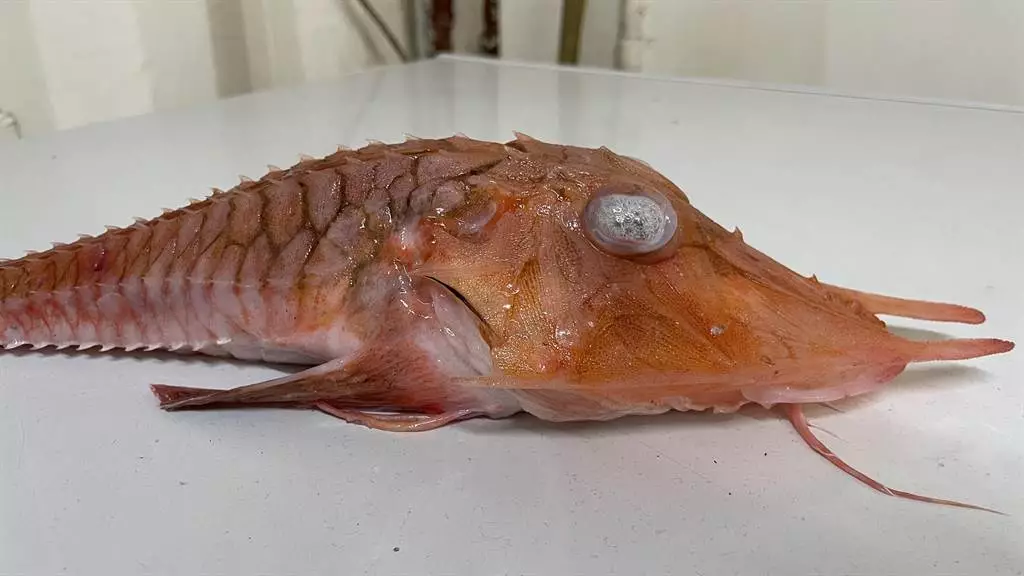 經過專家比對後,判斷為罕見的深海魚類,名為「鋸棘紅魴鮄」,主要分布於西太平洋至印度洋之間的海域,從日本海南端到台灣周遭海域都有捕獲紀錄,不會游泳,只能在沙底蠕動。