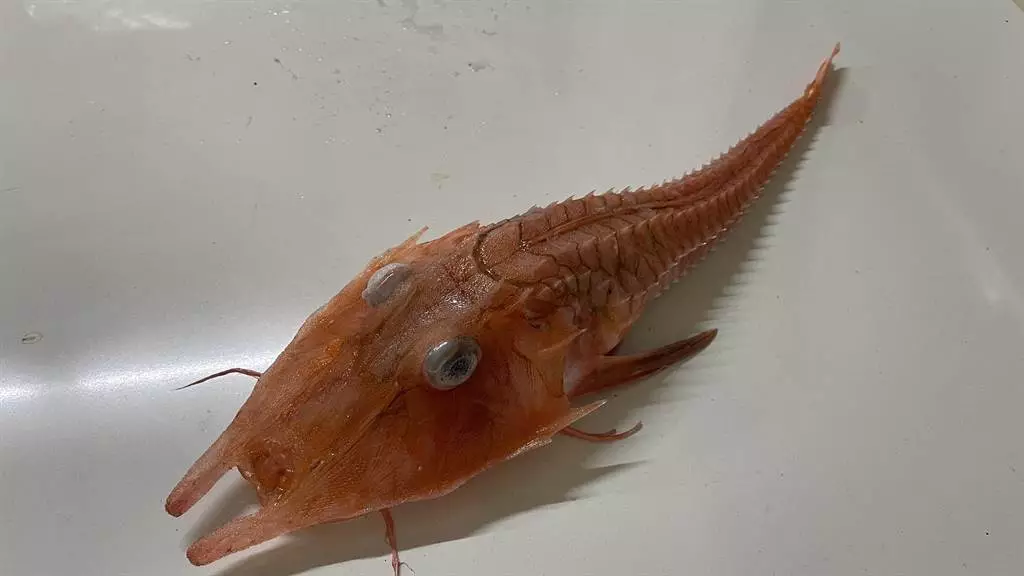 該條怪魚魚頭似龍身似蝦 。
