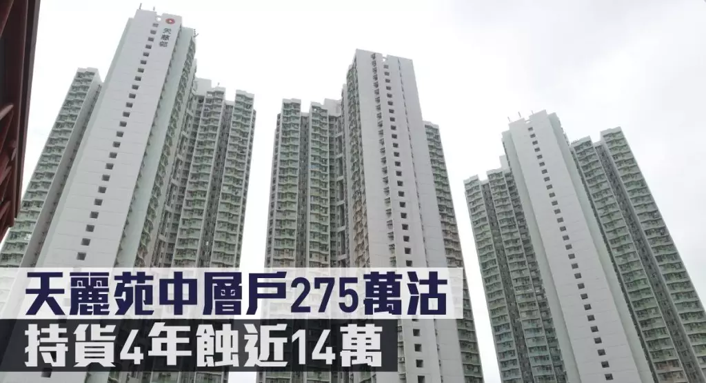 利嘉閣分行經理蕭啟諾稱,天水圍天麗苑中層19室,面積約424方呎,獲白居二買家斥資275萬(居二市場價)承接,呎價約6486元。