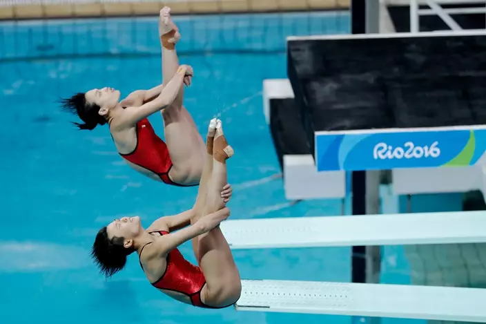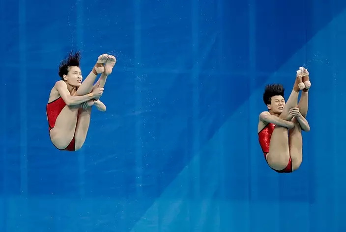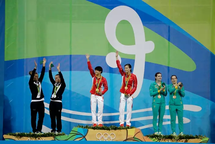 奧運共有八個跳水項目,由女子雙人三米彈板揭開序幕。中國跳水「夢之隊」奧運四朝元老吳敏霞夥拍新星施廷懋,爭取三度衛冕,最終以總分345.6分力壓意大利和澳洲選手輕鬆奪金,超越第二位對手多達31分。