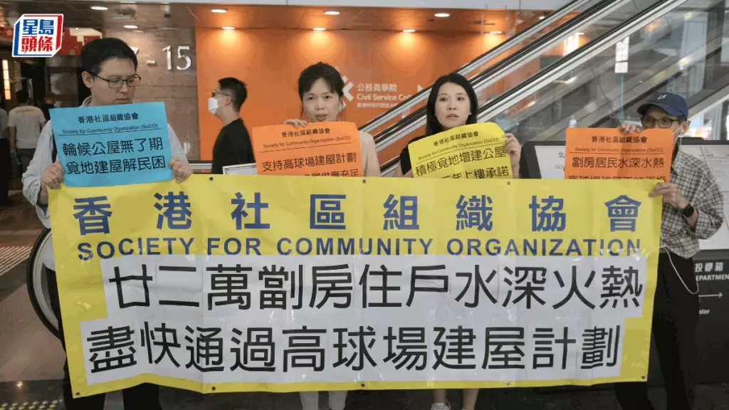 香港社區組織協會亦有到場請願,指22萬劏房住戶正處於「水深火熱」,希望盡快通過高球場建屋計劃。