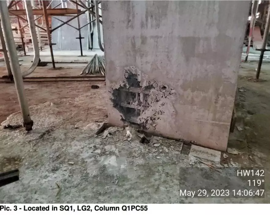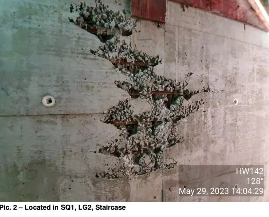 港大薄扶林142號西高山職員宿舍發展項目的部分鋼筋混凝土構件質量欠妥,包括出現混凝土灌注呈蜂窩狀質量問題。資料圖片