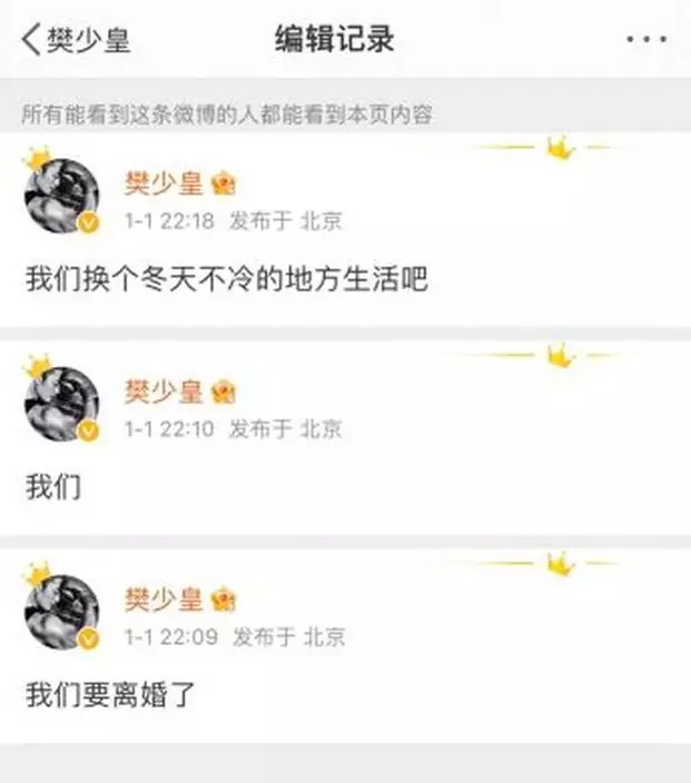 JJ於今年1月1日在貼出夫妻合照慶祝結婚7周年,但樊少皇轉貼時竟然發文:「我們要離婚了。」之後又「彈弓手」多次修改,即惹來網民無限揣測。事後,JJ發文表示:「吃瓜吃到自己頭上了,等後續。出來解釋解釋吧樊少皇,我就看看你怎麼說。」間接否認婚變傳聞。其後,二人不時分享恩愛合照,力證感情不變。