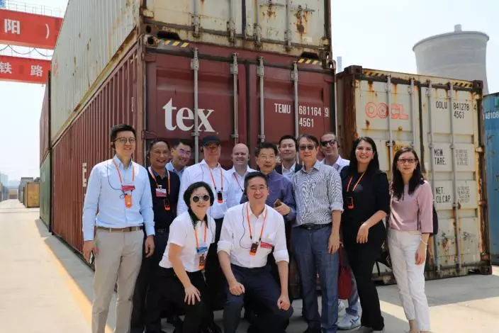 參訪團成員在東方紅(洛陽)國際陸港合影。巴士的報記者攝