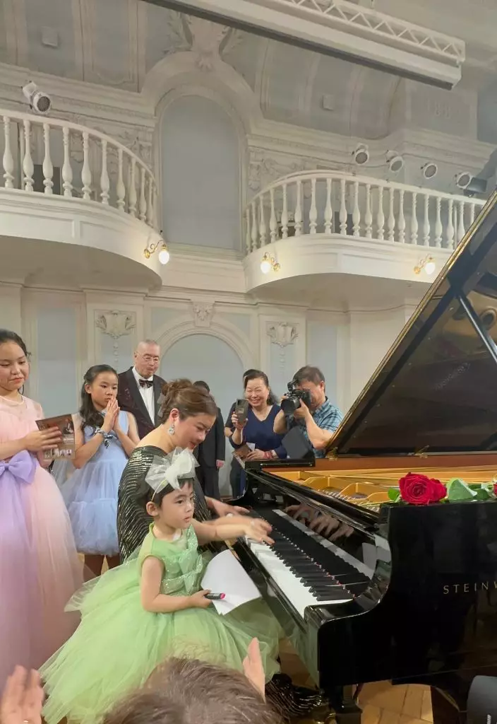 身兼演出與演奏會總策劃的孫穎說:「今次真係好開心!其實我哋主辦嘅盛樂遊已經舉辦咗12年,2026年就到15週年,我正在籌備緊盛樂遊重返維也納金色大廳,當年帶咗近300個學生一齊登上金色大廳,當中有幾位已經係現時知名演奏家,佢哋已經講咗到時不見不散,呢個就係讓我堅持落去嘅原因。恰巧今次係劉老師相隔65年之後再喺「柴可夫斯基國際音樂比賽」上演奏、再加上適逢七一回歸26週年、PALLAS喺疫情咁艱難嘅日子下堅持,所以就策劃咗呢次到世界音樂藝術強國表演嘅計劃,可以推動中俄藝術文化。今次為咗鼓勵學生,本來唔表演嘅我都上台彈奏《我和我的祖國》和《喀秋莎》兩首曲目。今次貝貝都有上台,貝貝而家好有節調感,人生第一次踏上莫斯科演奏廳,全場都好滿足,開心拍掌,感覺真係好夢幻。」