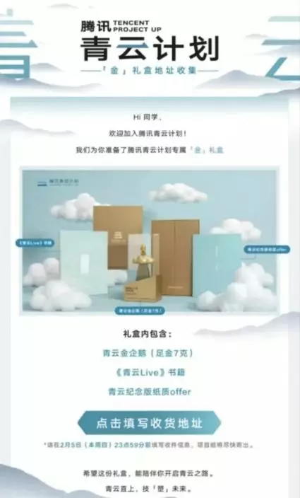 據《極目新聞》報道,有網民近日發文,稱收到騰訊校招黃金禮盒,禮盒內包含青雲金企鵝(足金7克)、《青雲Live》書籍和青雲紀念版紙質聘書,引來不少羨慕。