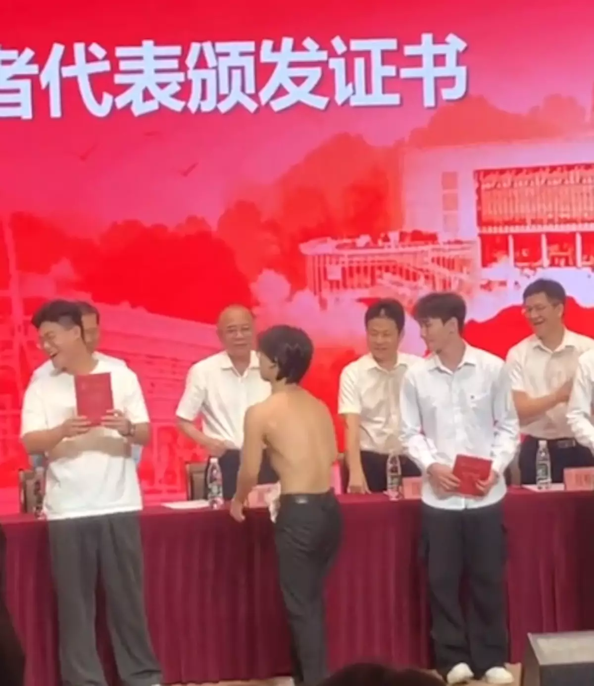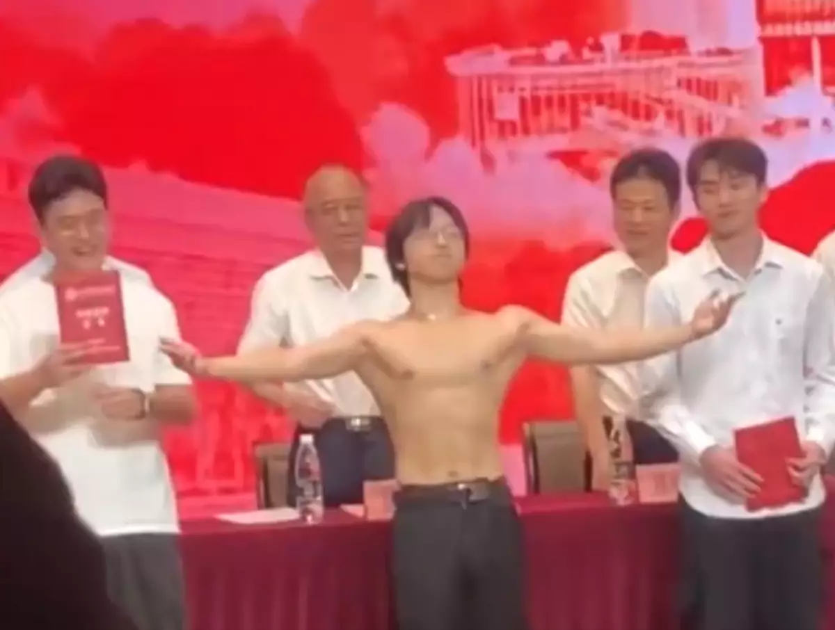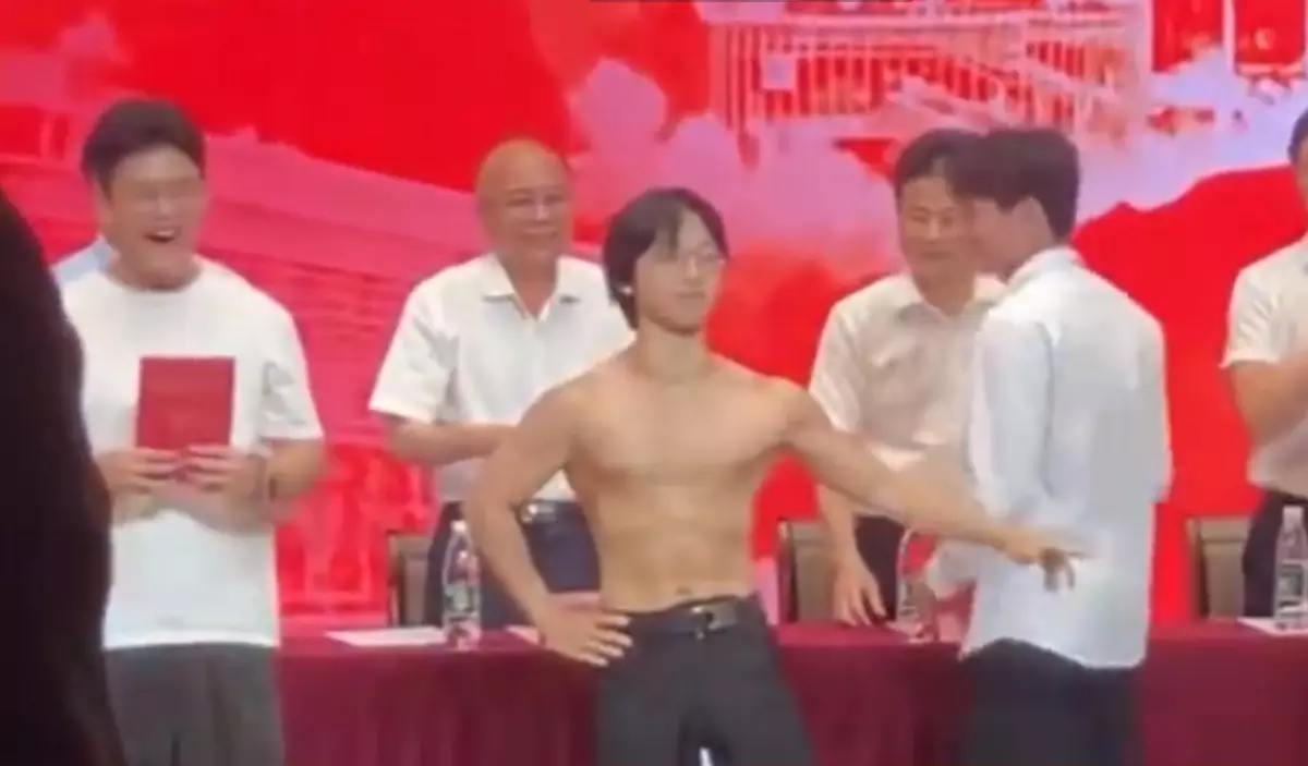 早前,該名就讀廣州廣東工貿職業技術學院的劉姓男生於畢業禮上成功靠大曬肌肉「搶fo」。從該校學生拍下的影片可見,事發時劉男正在台上參與工貿技師證書頒發儀式,當他從老師手上接過畢業證書後,竟突然脫下上身的恤衫,並擺出不同姿勢,展示身上各個部位的肌肉。