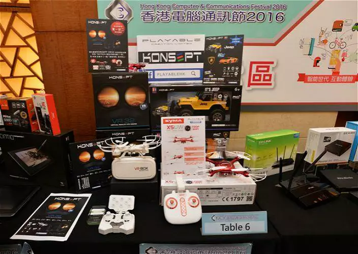 另外兩個本地品牌「Konsept」和「Okaa」則同樣推出了首發的VR(虛擬實景)產品。前者以VR眼鏡配合航拍機,讓用家化身飛機師感受空中實況,場內限量200部只售699元。後者則以VR配合360度雙鏡頭相機拍攝全景照片,優惠價1780元,全場限量約400部,每日首15名買家更多減300元。
