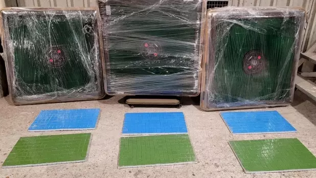 警方在反賭博行動中,檢獲三張麻雀枱、六副麻雀及小量現金。(警方圖片)