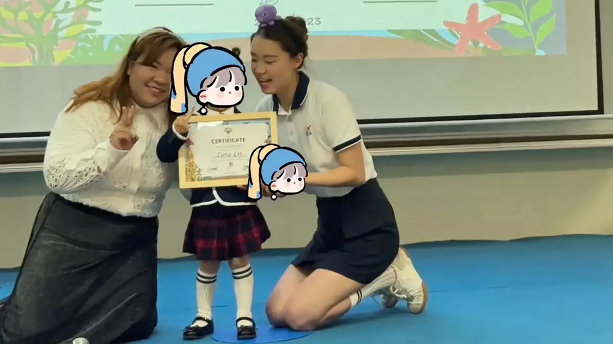 43歲的林峯於2019年與比他小10年的內地模特兒張馨月(Carina)結婚,翌年9月誕下囡囡Luna「格格」。由於林峯近年主力在內地發展,,為免與妻女長期分隔兩地,於是全家移居上海,並安排囡囡入讀當地的私立雙語幼稚園,而林峯雖然工作忙碌,但一有時間就會陪家人,日前他就與太太齊齊去看囡囡的畢業演出。
