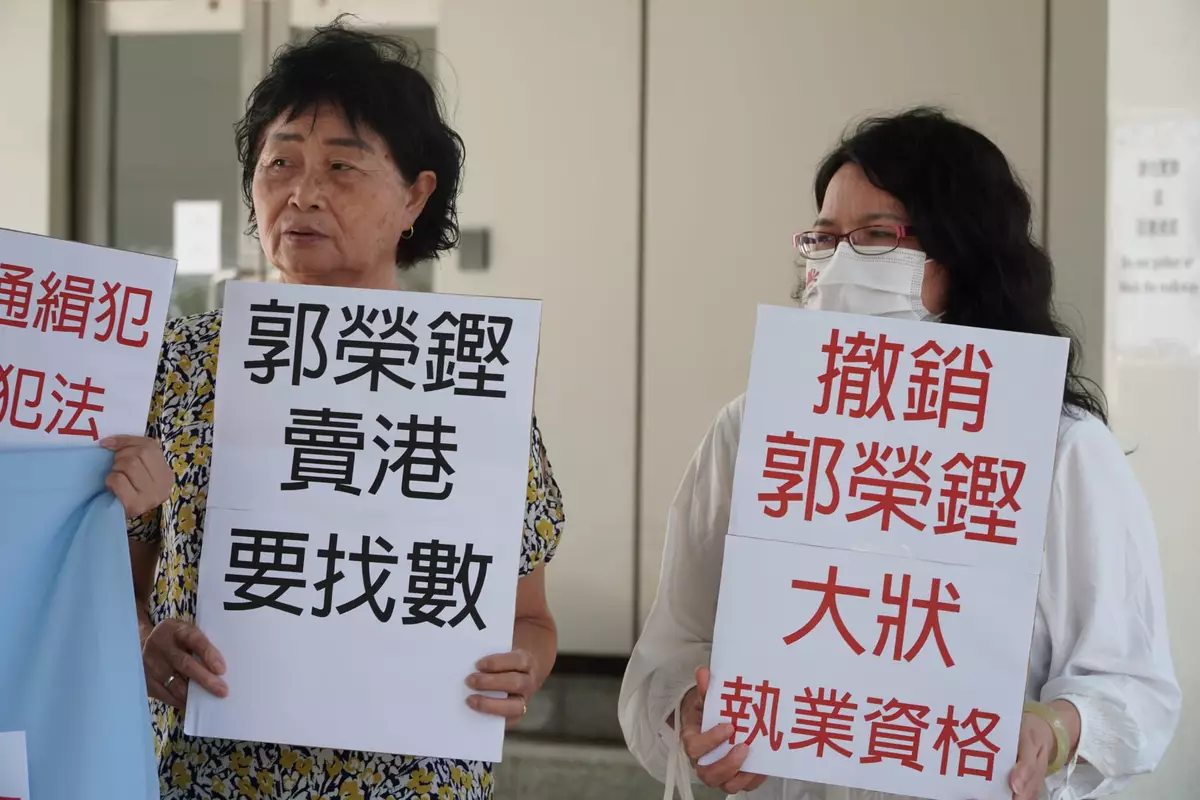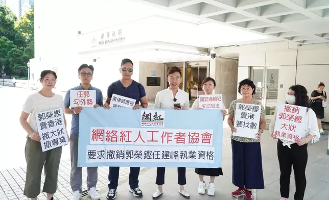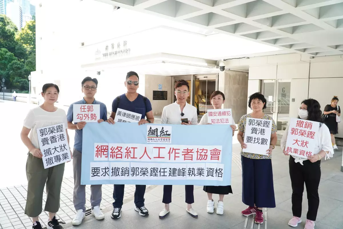 網絡紅人工作者協會今(13日)11點,聯同多位市民,手持「郭榮鏗 賣香港 搣大狀 撤專業」、「撤銷郭榮鏗大狀執業資格」、「盡早紀律審查郭榮鏗 大律師公會硬起來」及「郭榮鏗賣港要找數」等標語,到金鐘法院道高等法院低層二樓的大律師公會集欲請願,認為律政司向大律師公會和律師會投訴郭、任2人,屬合適、合理,因兩個監管團體需要以紀律操守、專業準則懲處被通緝2人,繼而因2人「嚴重違法人士不應該做律師。」而撤銷2人的大律師或律師資格。