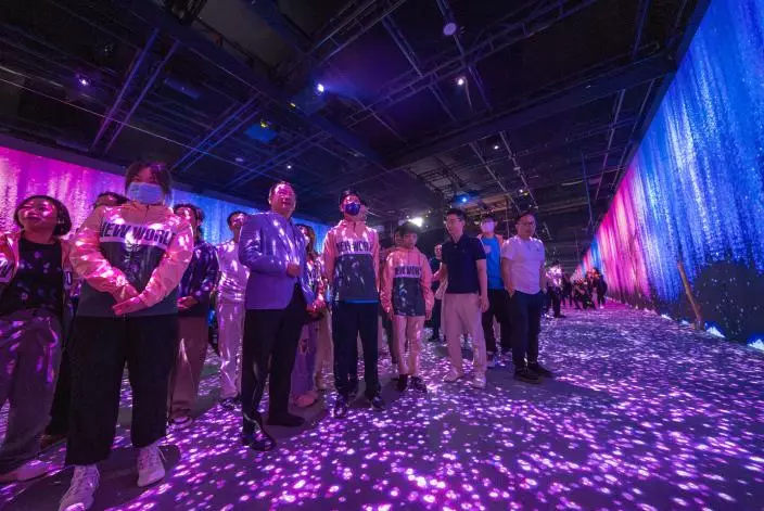 「共創明『Teen』計劃」的學員與政務司司長陳國基一同參觀全港最大型沉浸式數碼藝術館 ARTE M Hong Kong,體驗藝術科技創造的大自然世界。新世界圖片